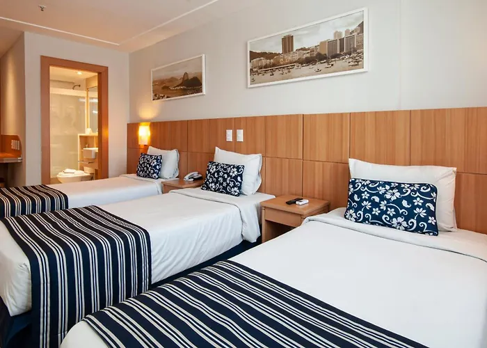 Dit hotel in Rio de Janeiro beschikt over 151 kamers, voorzien van een flatscreen TV met satelliet zenders en zelfbedieningsopties zoals een mini koelkast bar. Ze hebben een comfortabel interieur. De badkamers hebben een regendouche en een sauna en zijn ook uitgerust met een haardroger. Vanuit sommige compacte kamers kunt u genieten van binnenplaatszichten.